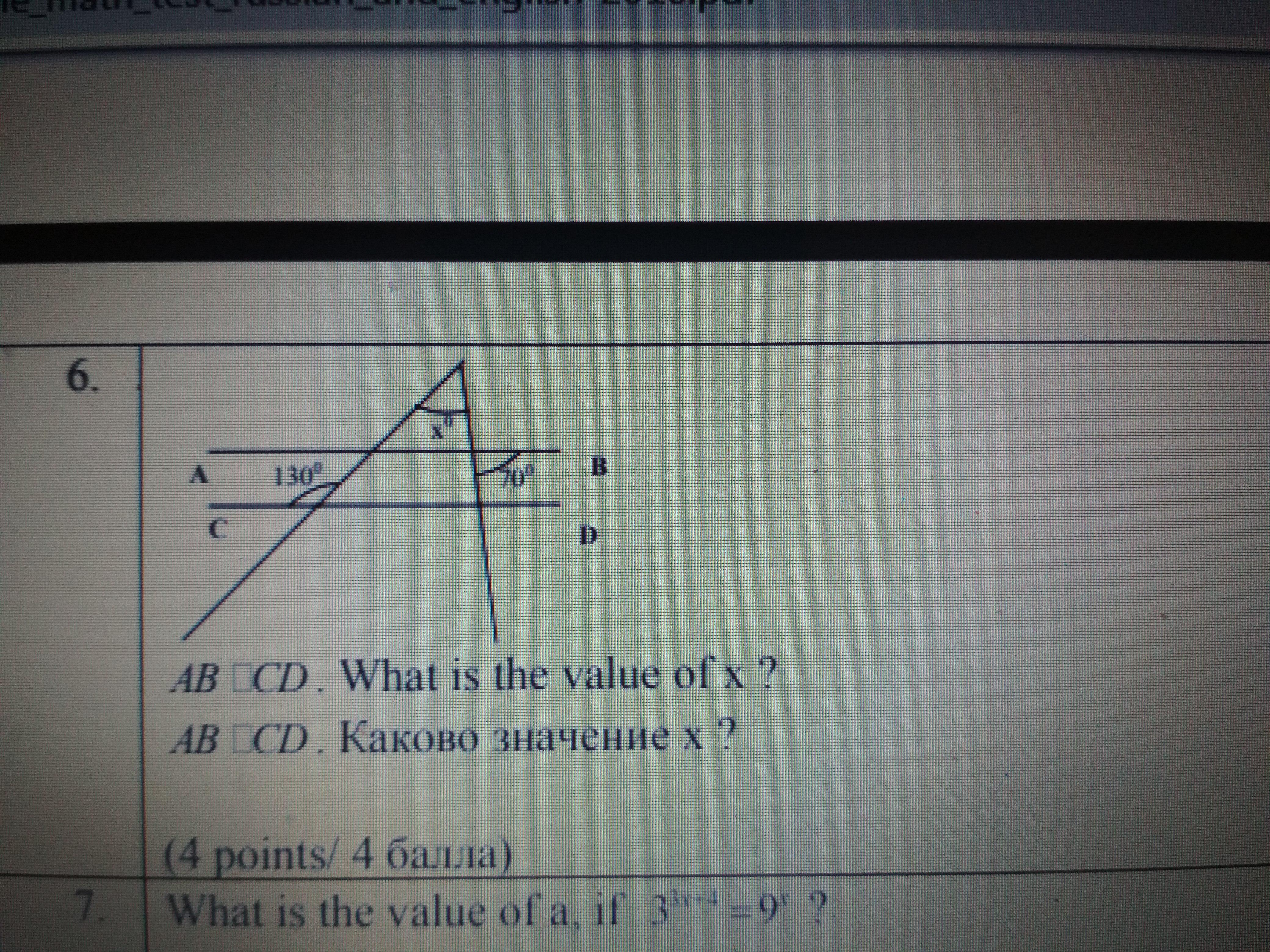Объяснение: В верхнетреугольнике (образованном углом и отскаемым прямой АВ) углы при АВ равны70(каквертикальный) и 180-130=60 (как смежный к накресс лежащему).