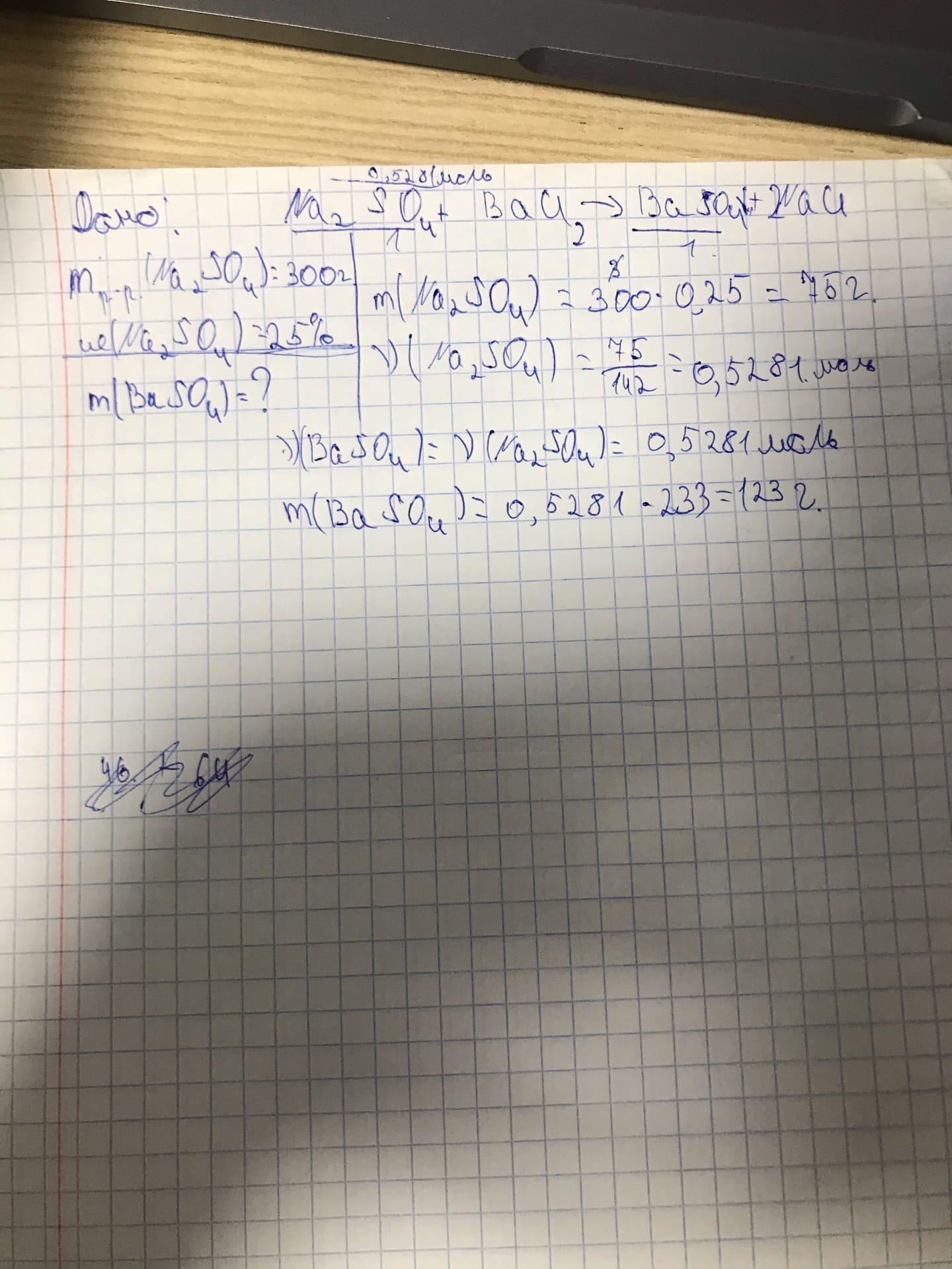 Ответ: m(BaSo4)=123г