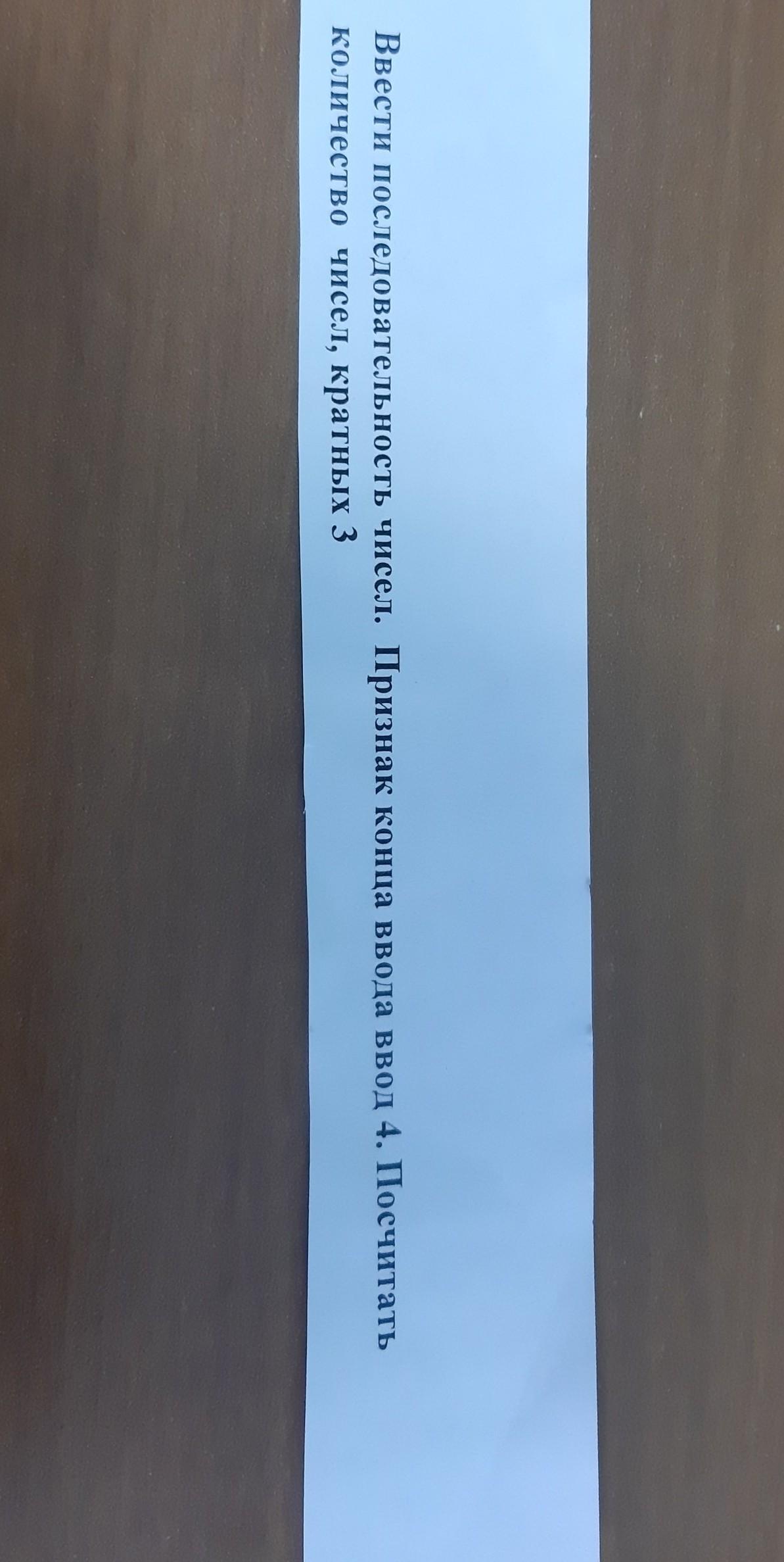 ввести последовательность чисел.признак конца ввода 4.посчитать количество чисел,кратных 3