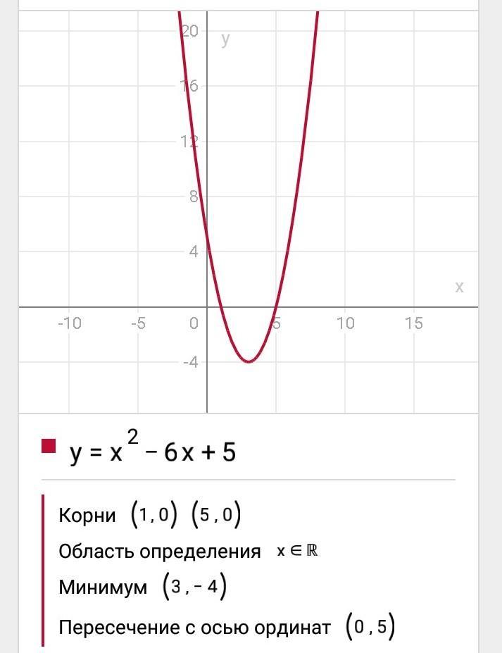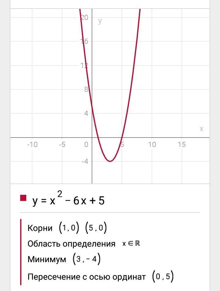 Дана функция у =х2-6x +5 а) запишите координаты вершины параболы. b) запишите в каких четвертях находится график функции с) запишите ось симметрии параболы d) найдите точно пересечения с осями координат е) постройте график функции