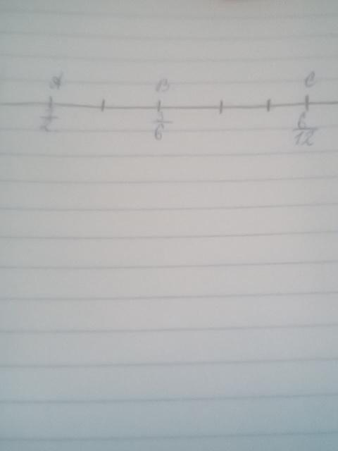 отметьте на одной координатной прямой дроби 1/2, 3/6,6/12