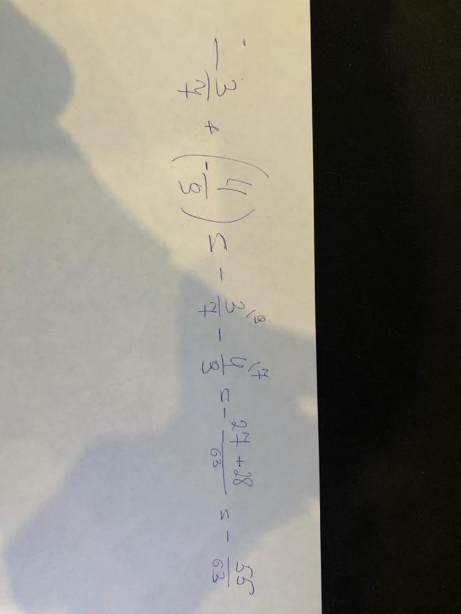 -3/7+(-4/9)=-(3/7×9+4/9×7)=-(27/63+28/63)=-55/63