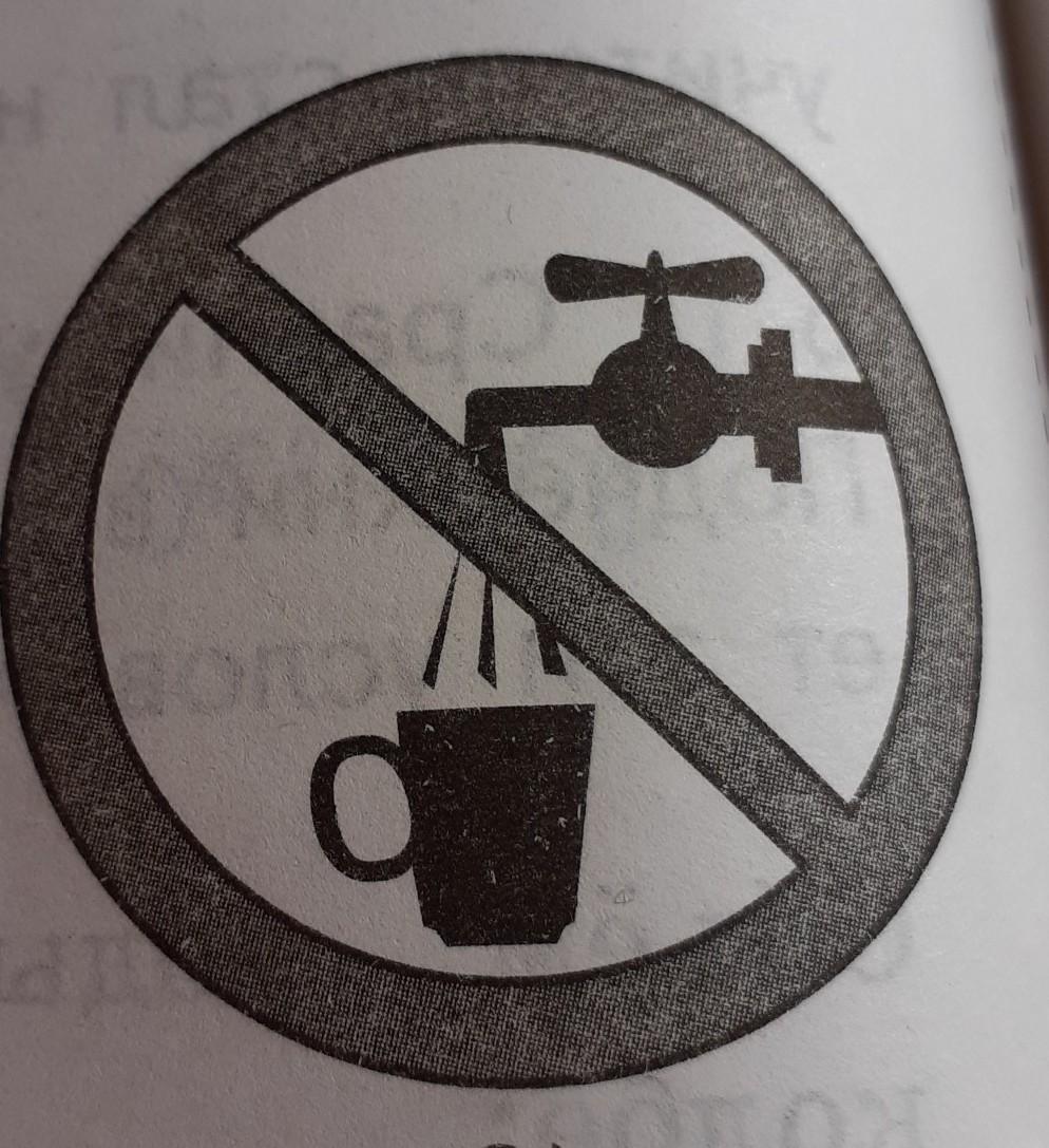 Этот знак обозначает, что из этого крана нельзя пить воду. Этот знак можно встретить там, где есть источники воды: умывальники, резервуары с водой и др.