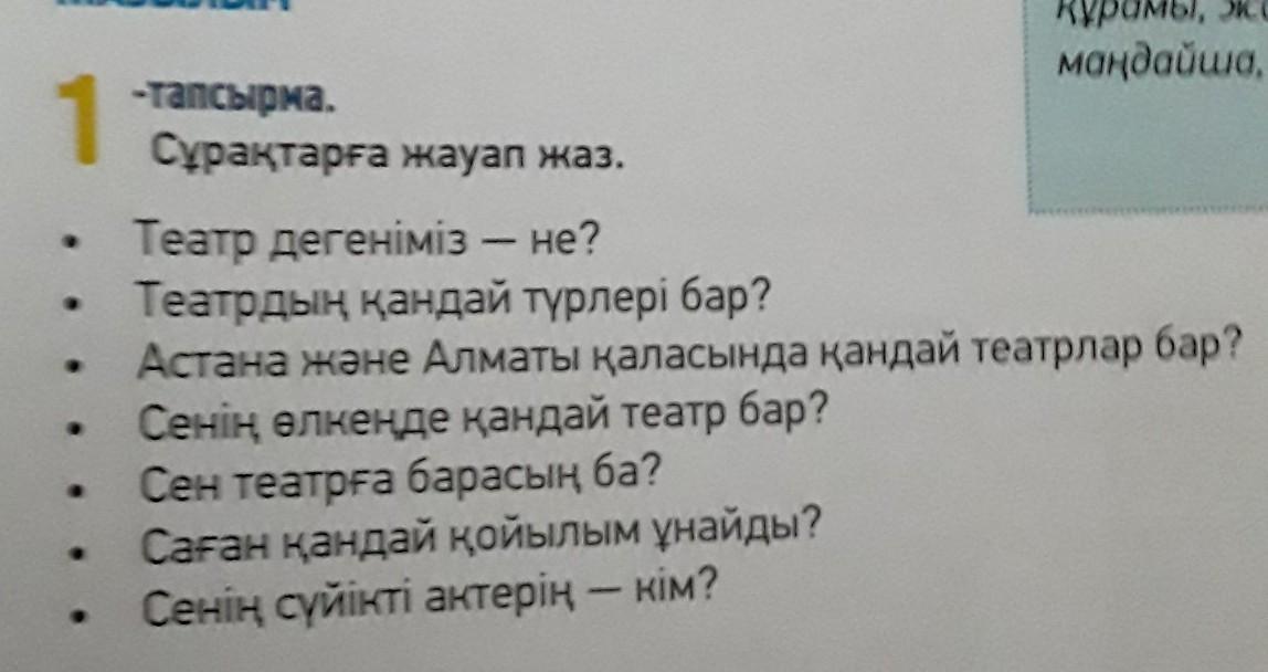 1.)Театр-бұл спектакльдер,ән және би көрсететін бөлме
