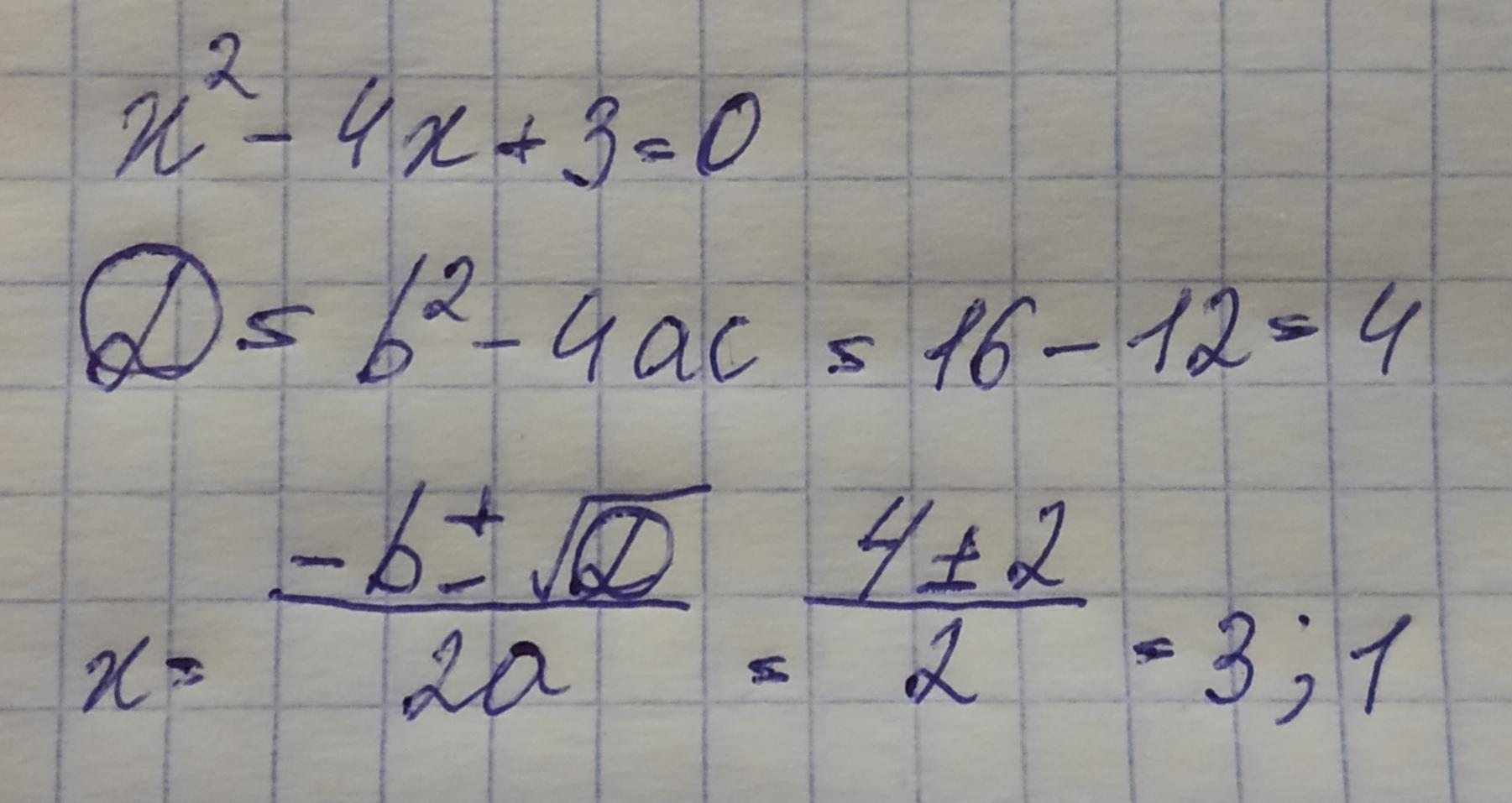 Ответ: дискриминант 16-12=4, корни х1=(4+2)/2=3, х2=(4-2)/2=1.