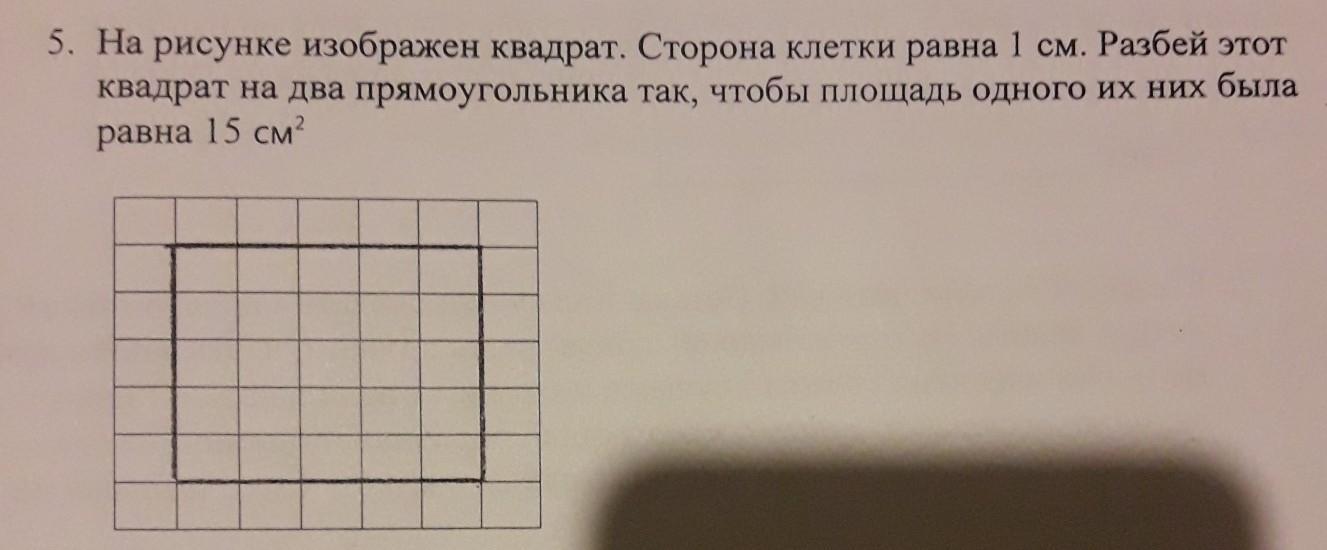 На рисунке изображен квадрат. Сторона клетки равна 1 см. Разбей этот