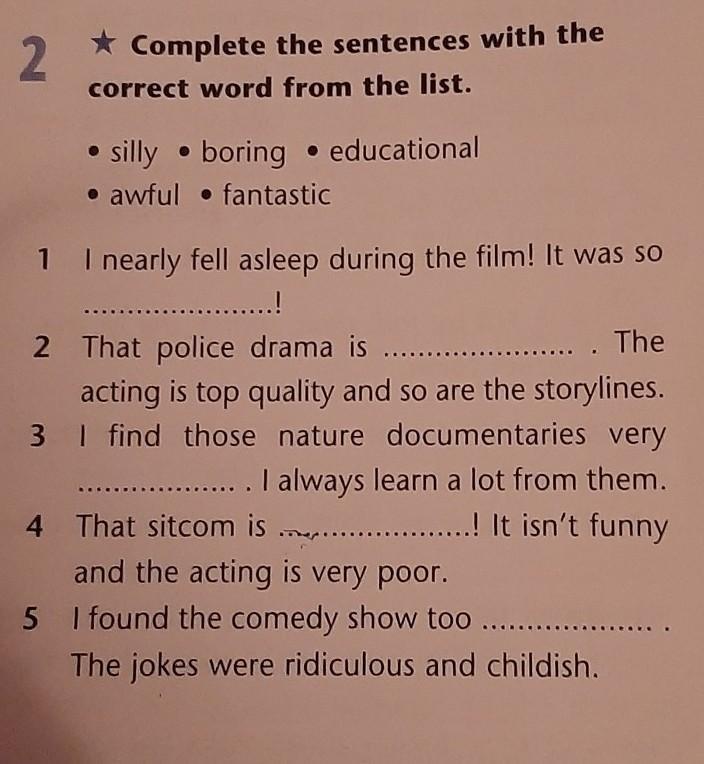 1/Boring 2/fantastic 3/educational 4/awful 5/silly