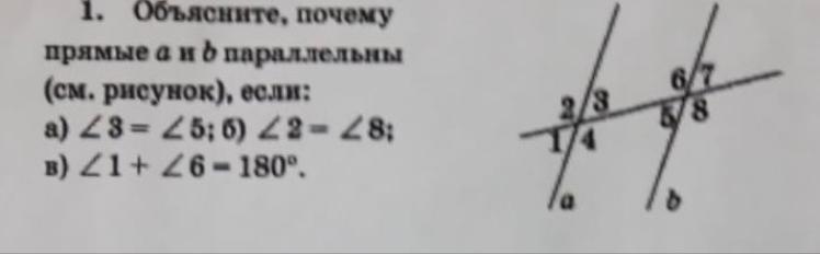 Объясни,почему прямые а и б параллельны (см. рисунок ), если: