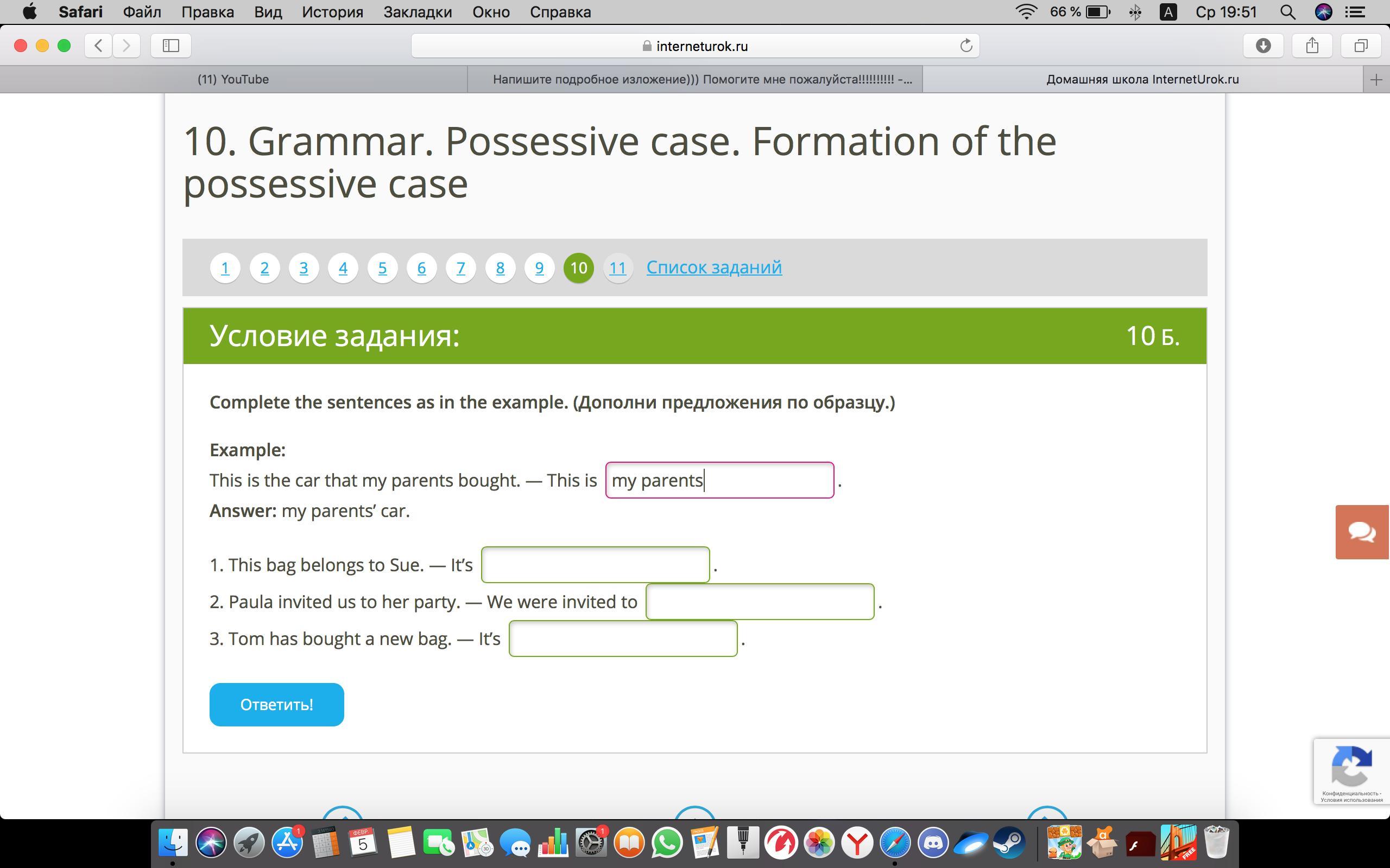 my parent's car (parents - множ. число, а используя ' можно сказать, что это их )