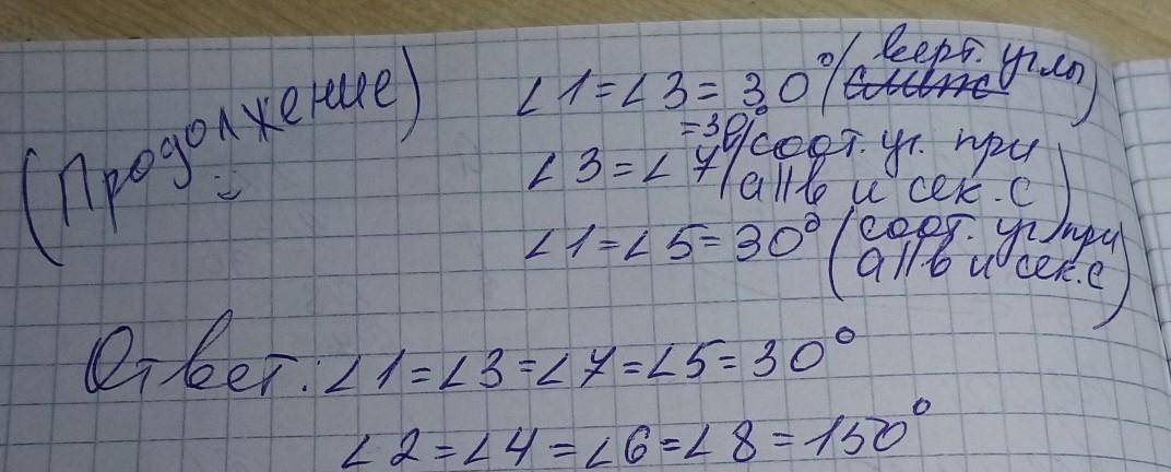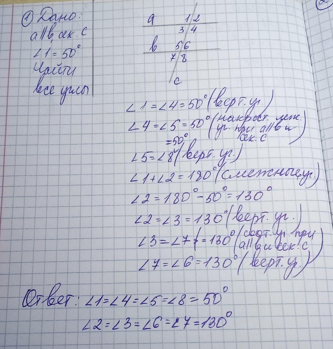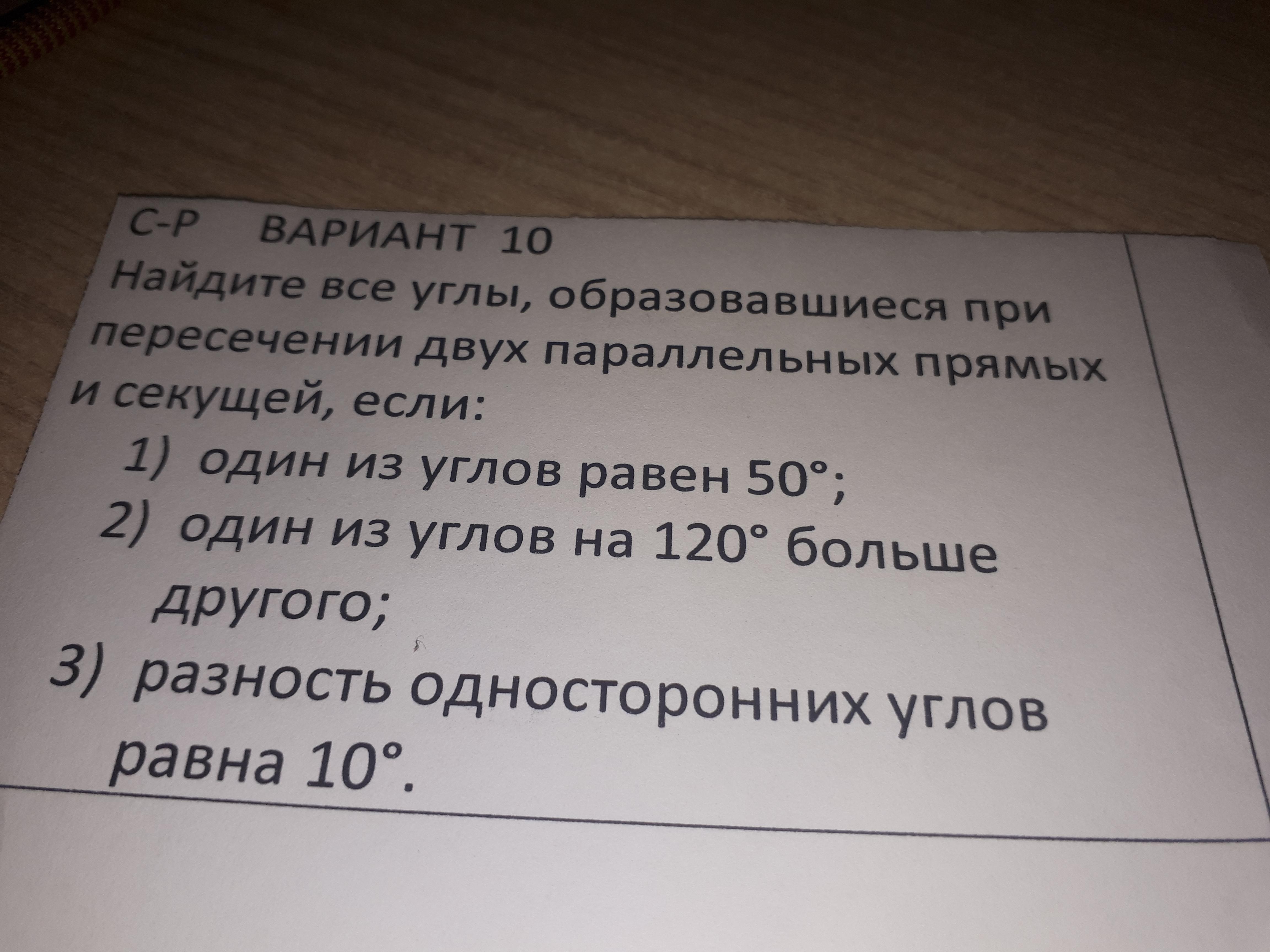 Нпйдите все углы, оброзовавшиеся при пересечении двух параллельных прямых и секущей, если: