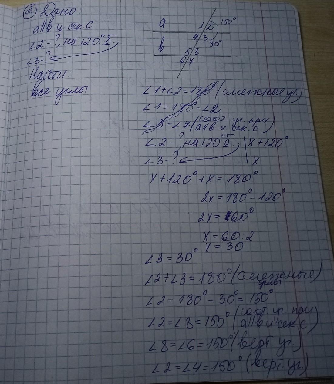 2) один из углов на 120° больше другого