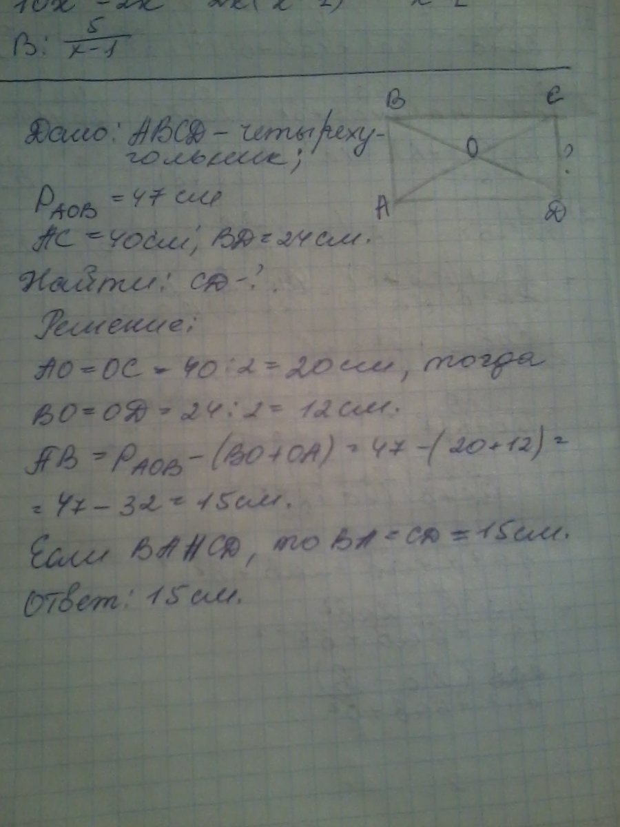 AOB равен 47 см, AC = 40 см, BD = 24 см. Найдите CD. ОЧЕНЬ НАДО ПОМОГИТИ ПОЖАЛУЙСТА, НЕ ЗНАЮ КАК РЕШИТЬ, НО ЗНАЮ ОТВЕТ(15см)