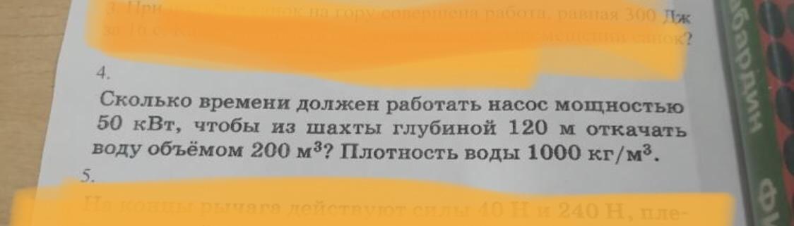t=mgh/p=20000×10×1200/50000=4800 c=80 мин