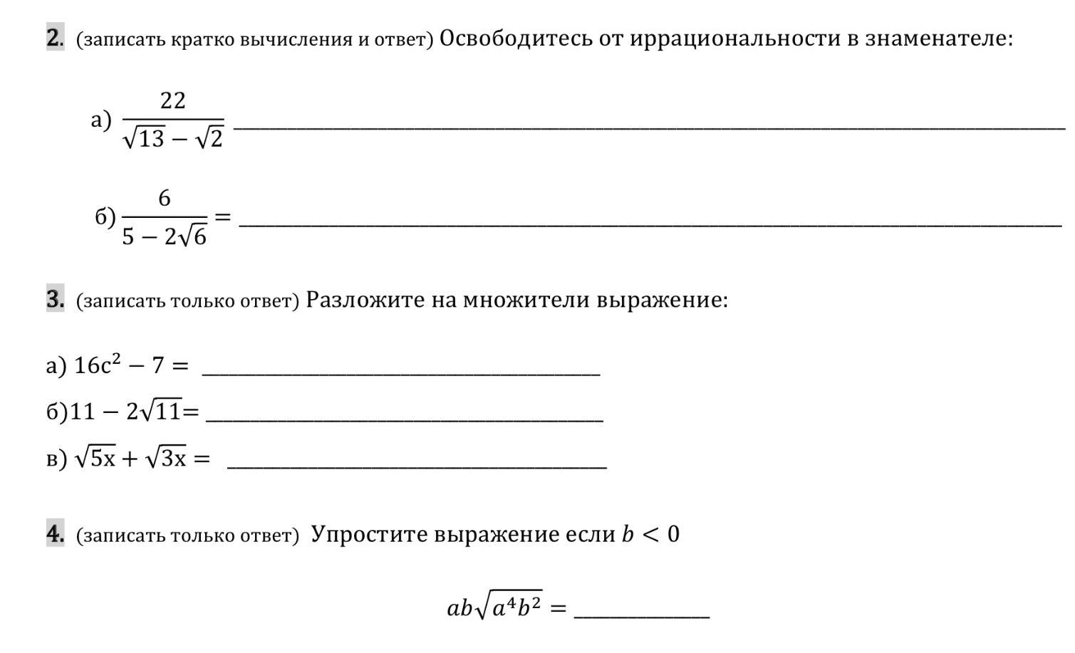3-а) (4с+√7)(4с-√7); 3-б) √х(√5+√3); 4) -ав√(а⁴в²).