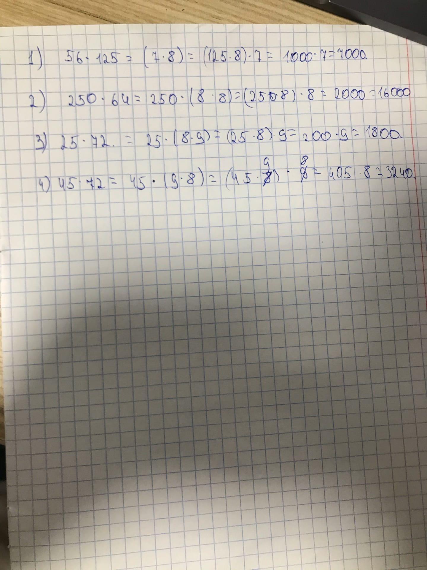 1) 56 • 125 = (7 • 8) • 125 = (125 • 8) • 7 = 1000 • 7 = 7000