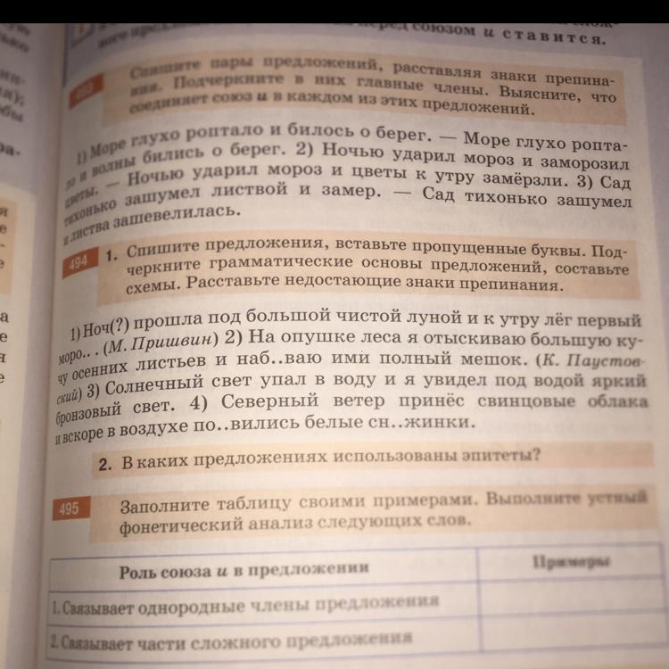 Ответ:1)(Ночь-подл.) (прошла-сказ.) под большой чистой луной, и к утру (лёг-сказ.) первый (мороз-подл.) . 2)На опушке леса (я-подл.) (отыскиваю-сказ.) большую кучу осенних листьев и (набиваю-сказ.) ими полный мешок. 3) Солнечный (свет-подл.) (-сказ.) упал в воду, и (я-подл.) (увидел-сказ.) под водой яркий бронзовый свет. 4) Северный (ветер-подл.) (принёс-сказ.) свинцовые облака, и вскоре в воздухе (появились-сказ.) белые (снежинки-подл.).