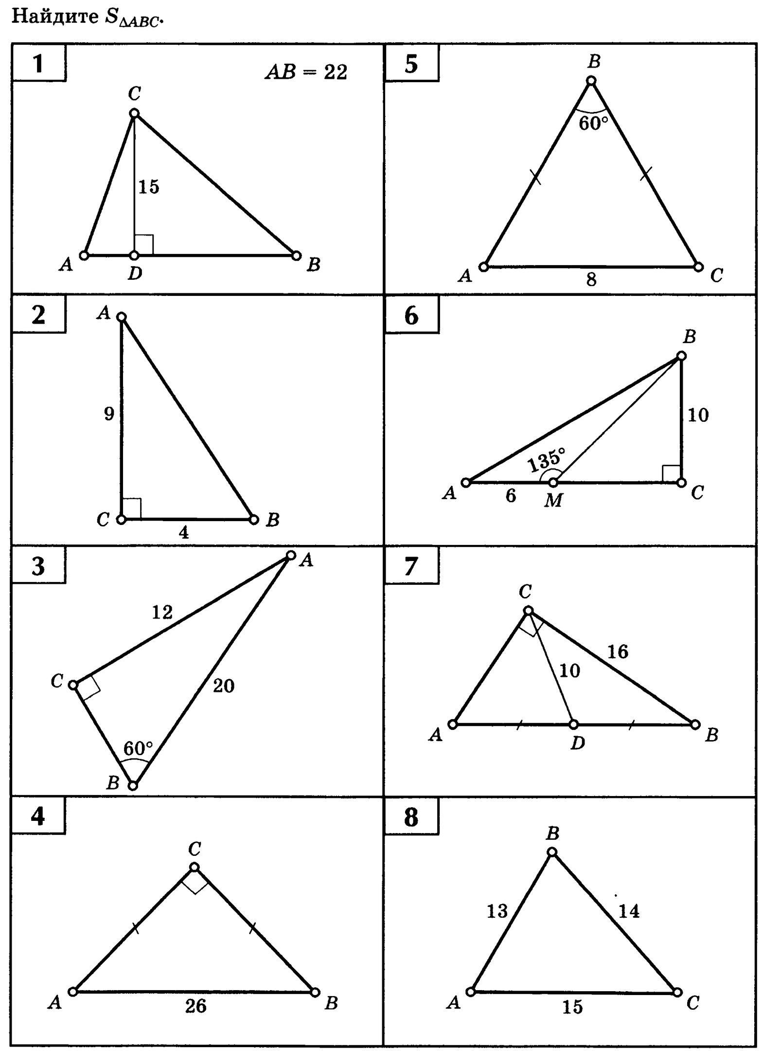 S∆=1/2 • катеты (для прямоугольных треугольников)