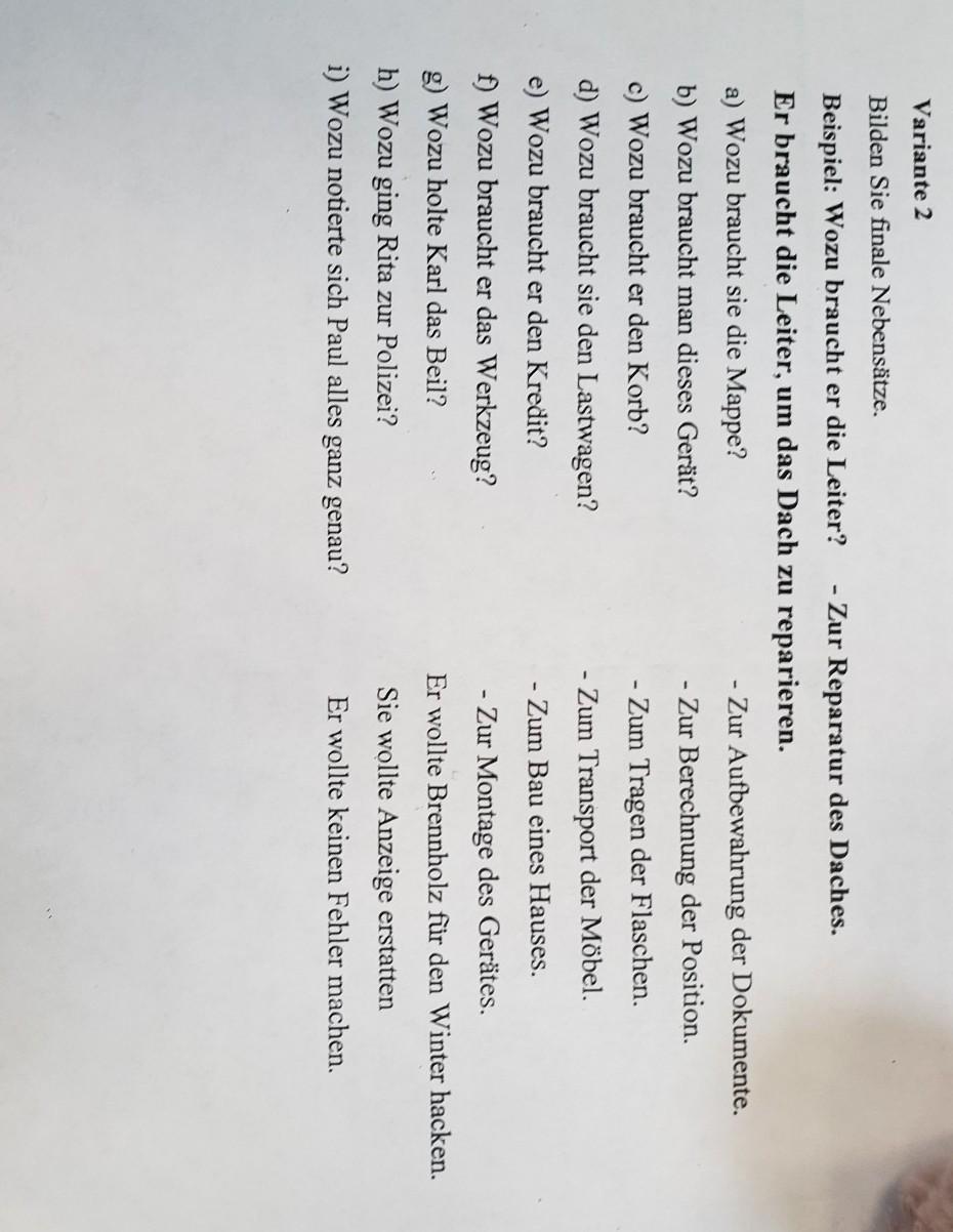 h) Rita ging zur Polizei, um Anzeige zu erstatten.