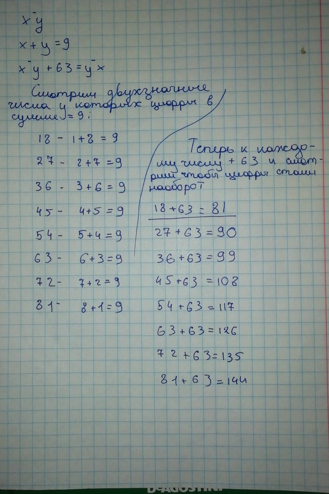 сумма цифр двузначного числа 9. если к числу прибавить 63 получим число обозначенное теми же цифрами, но написанными в обратном порядке. Найдите эти числа