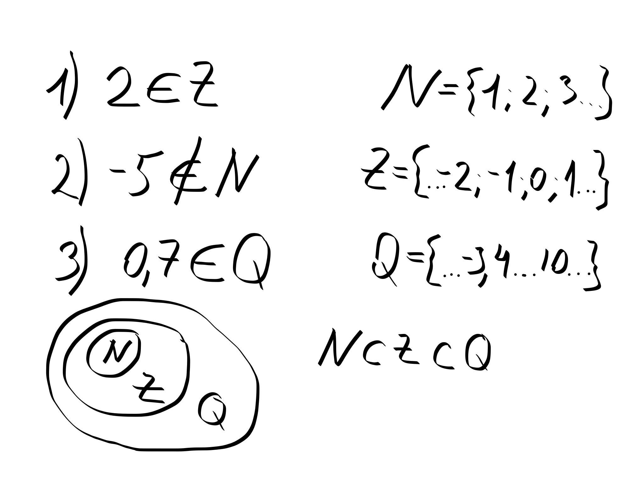 Поставь вместо звёздочки знак € или € зачеркнутое чтобы получилось истинное высказывание. 1) 2 * Z 2) -5 * N 3) 0,7 * Q
