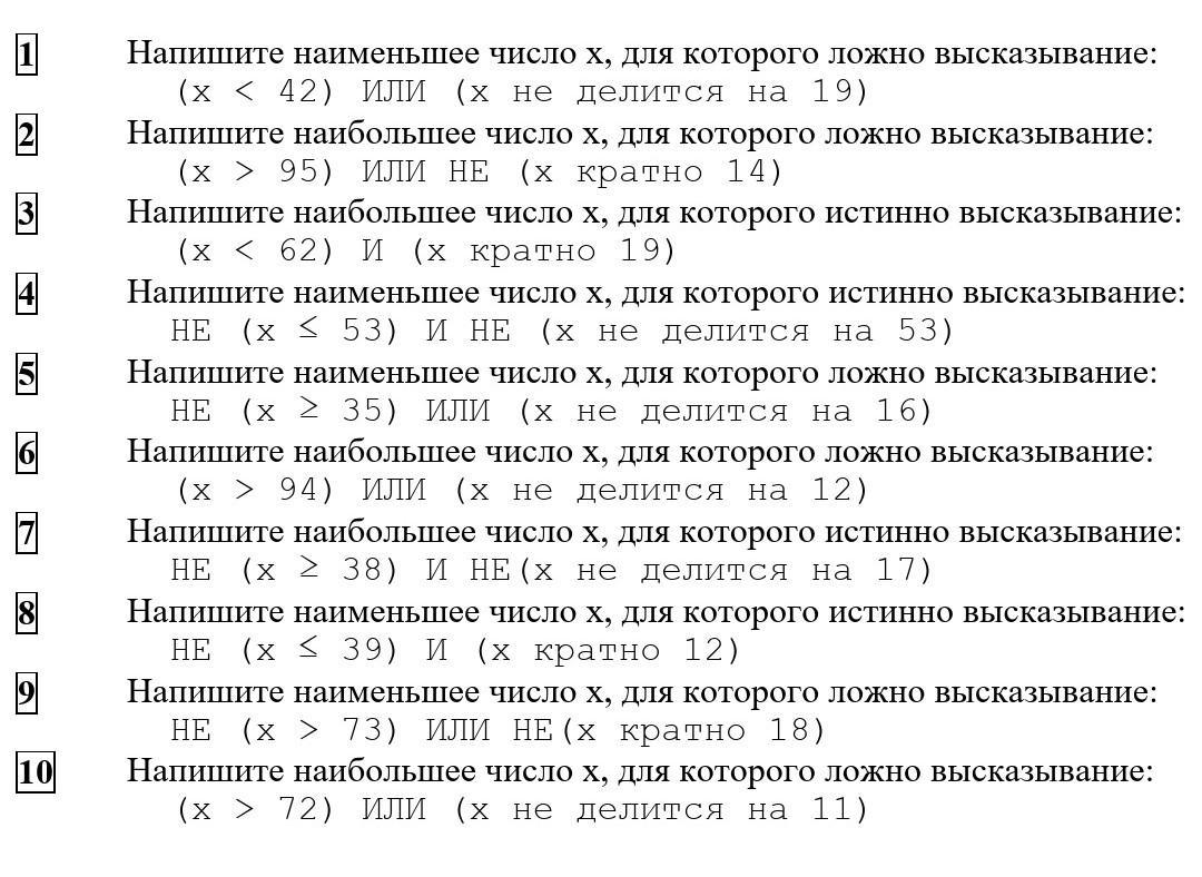 3. Все просто. Число должно быть меньше 62 и кратно 19 (так как оба условия истинны). Наибольшее удовлетворяющее этому условию число будет 57.