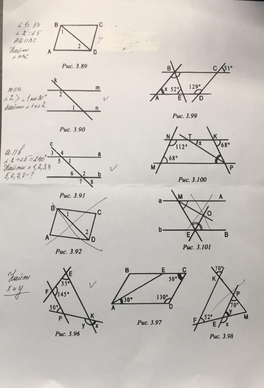 ∠у=180°-50°=130°, ∠х=150°-130°=50°