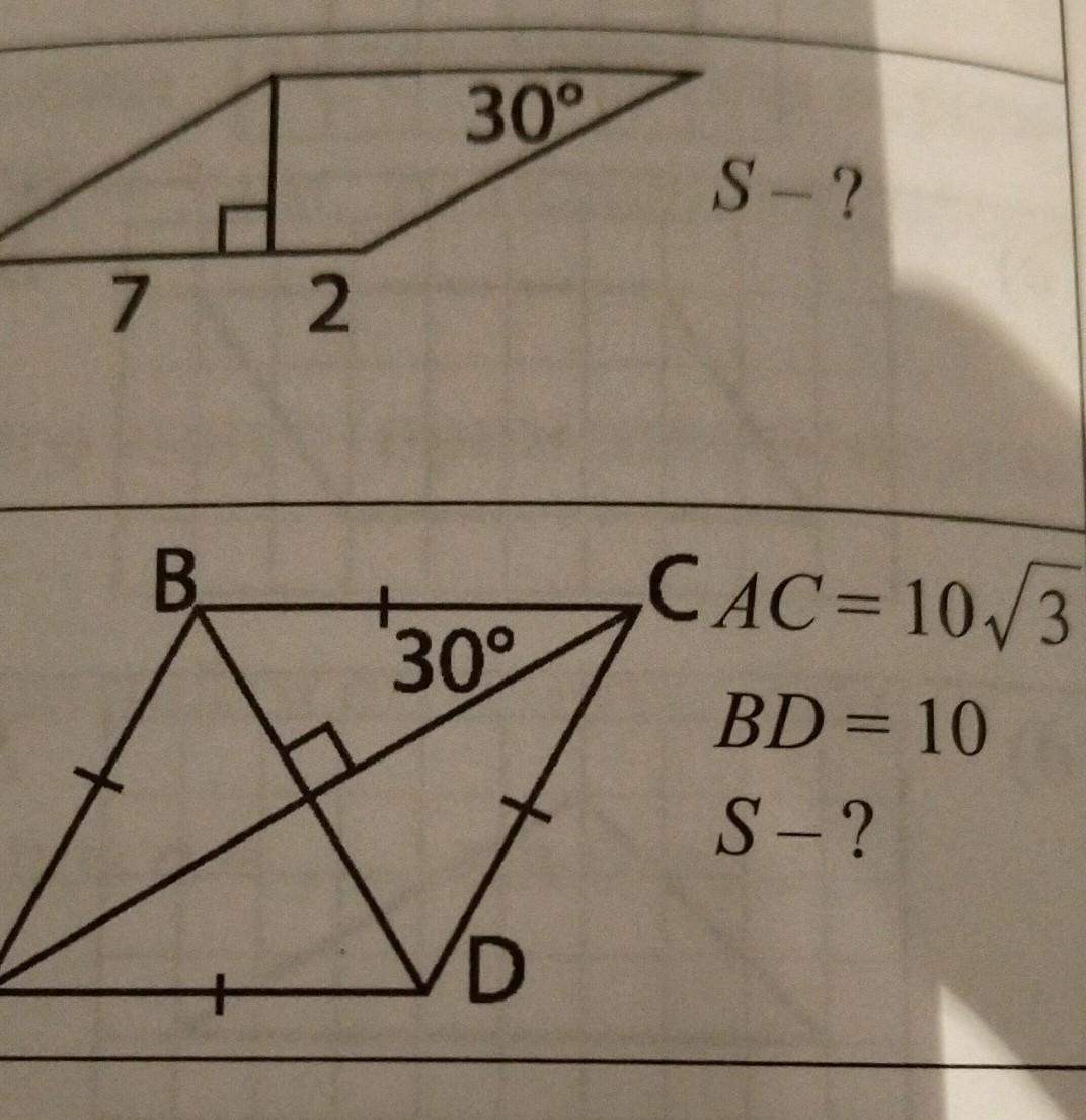 2) S(BCO)=1/2BO*OC. OC=AC/2= см; BO=BD/2=5см
