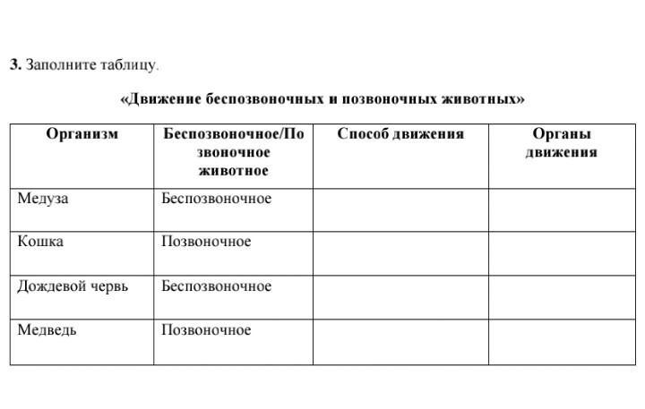 Дождевой червь: ползает. Органы: кожно-мускульный мешок, мышцы.