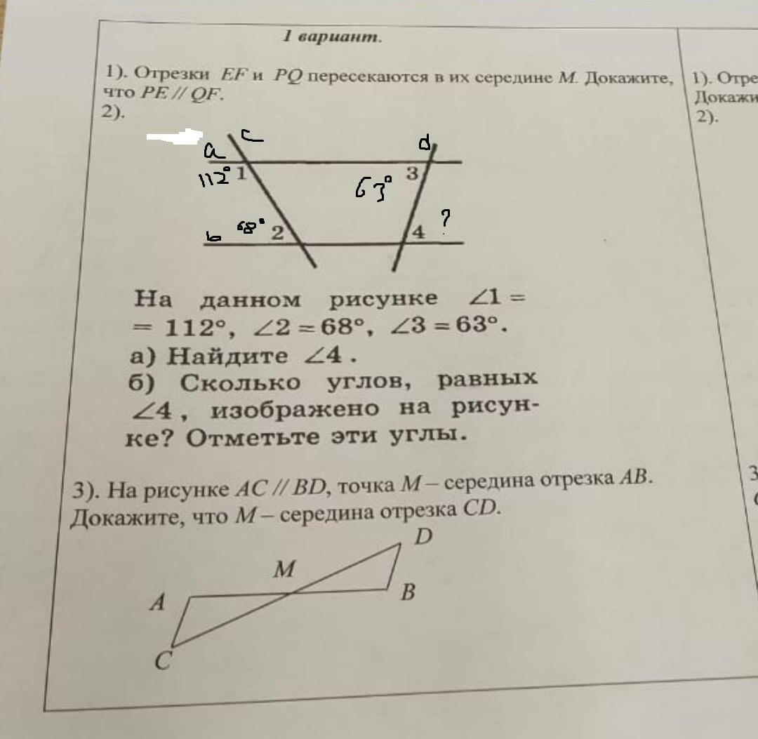 1) ∠1 и ∠2 - односторонние, при α,b и секущей - с, значит ∠1=∠2 так как их сумма равна 180° то есть - 112°+68°=180° , ⇒α║b