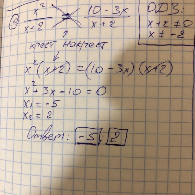 (х+5)*(х-2)=0 Х+5=0 х-2=0 х перечеркиваешь равно = -2 Х1=-5 и х2=2