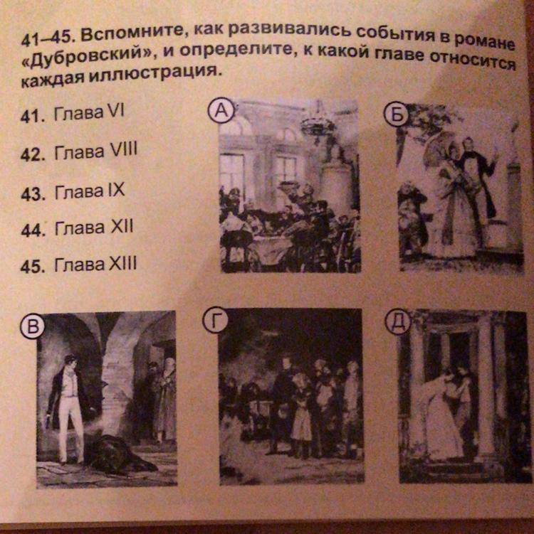 Вспомните, как развивались события в романе Дубровский, и определите, какой главе относится каждая иллюстрация