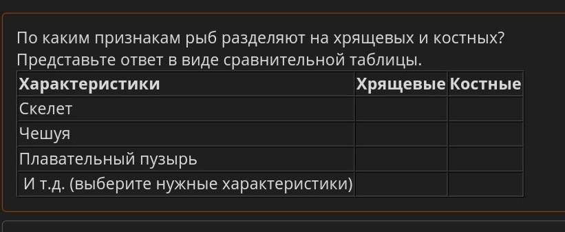 Костные рыбы: скелет состоит из хрящей и костей. Тело покрыто костными чешуями. Жабры покрыты жаберными крышками. Имеется плавательный пузырь.