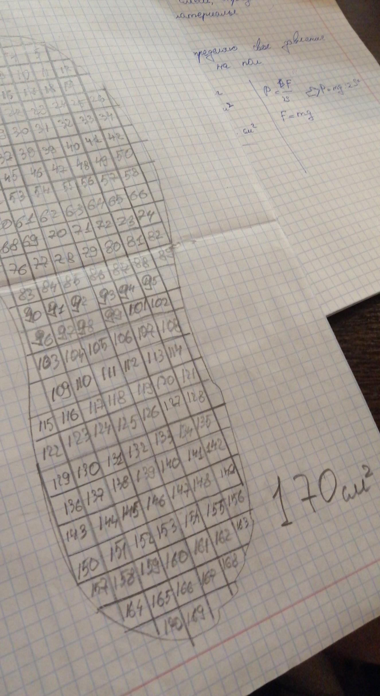 S = S1 + S2 = 0,034 м² ; // Складываем площади ступней