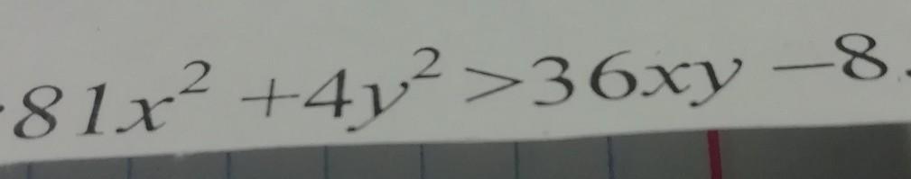 (9x)² + (2y)² - 2*2y*9x > - 8
