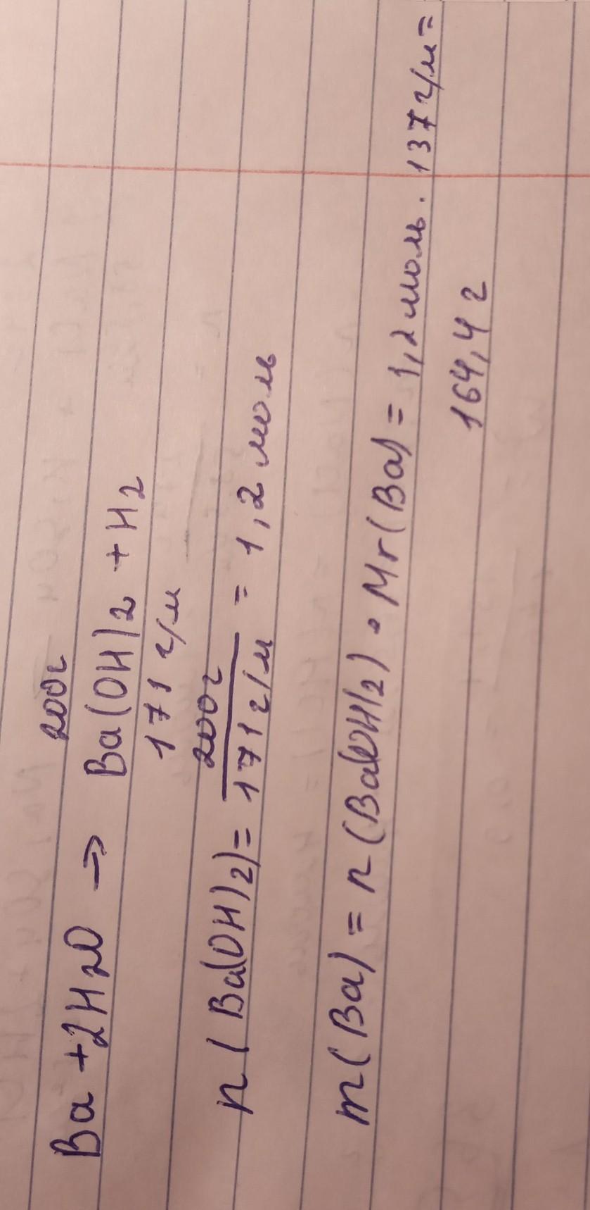 Определить количество металлического бария способного при растворении в воде получить 200г гидроксида бария