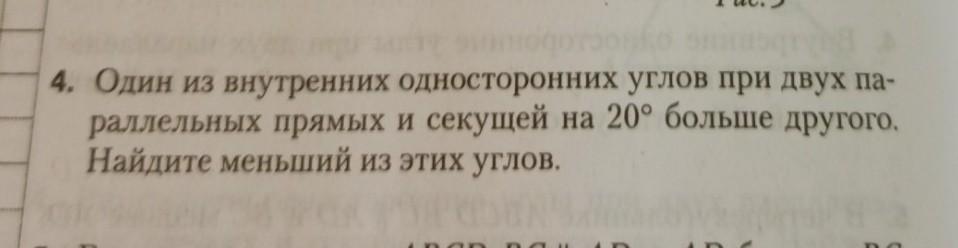 1 угол(х+20градусов), 2 угол-х, сумма равна 180 градусов, следовательно составим уравнение: х+20+х=180