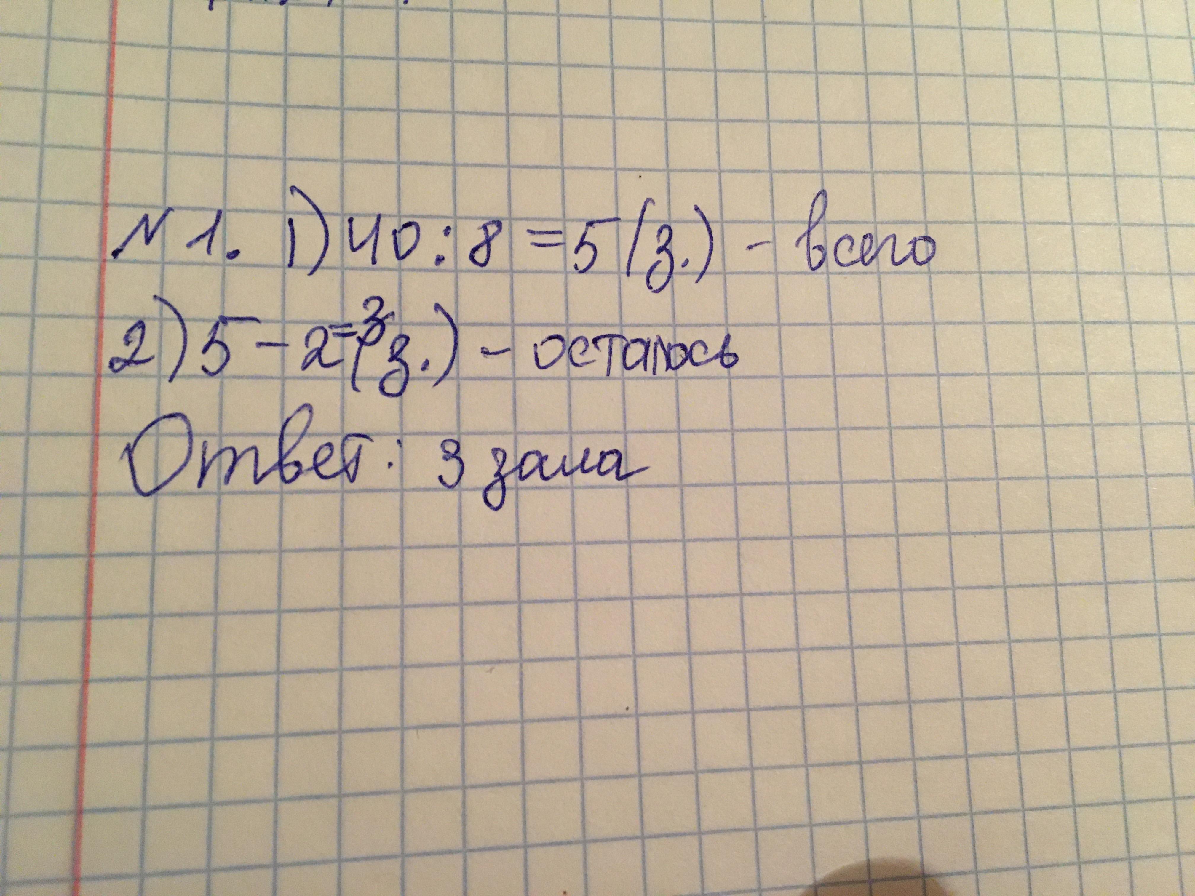 1) 40:8=5 залов