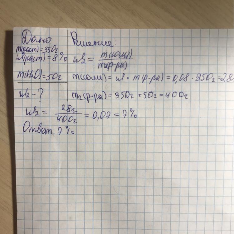 К 350г 8% водного раствора соли добавили ещё 50г воды. Какой процентной концентрации получится раствор.