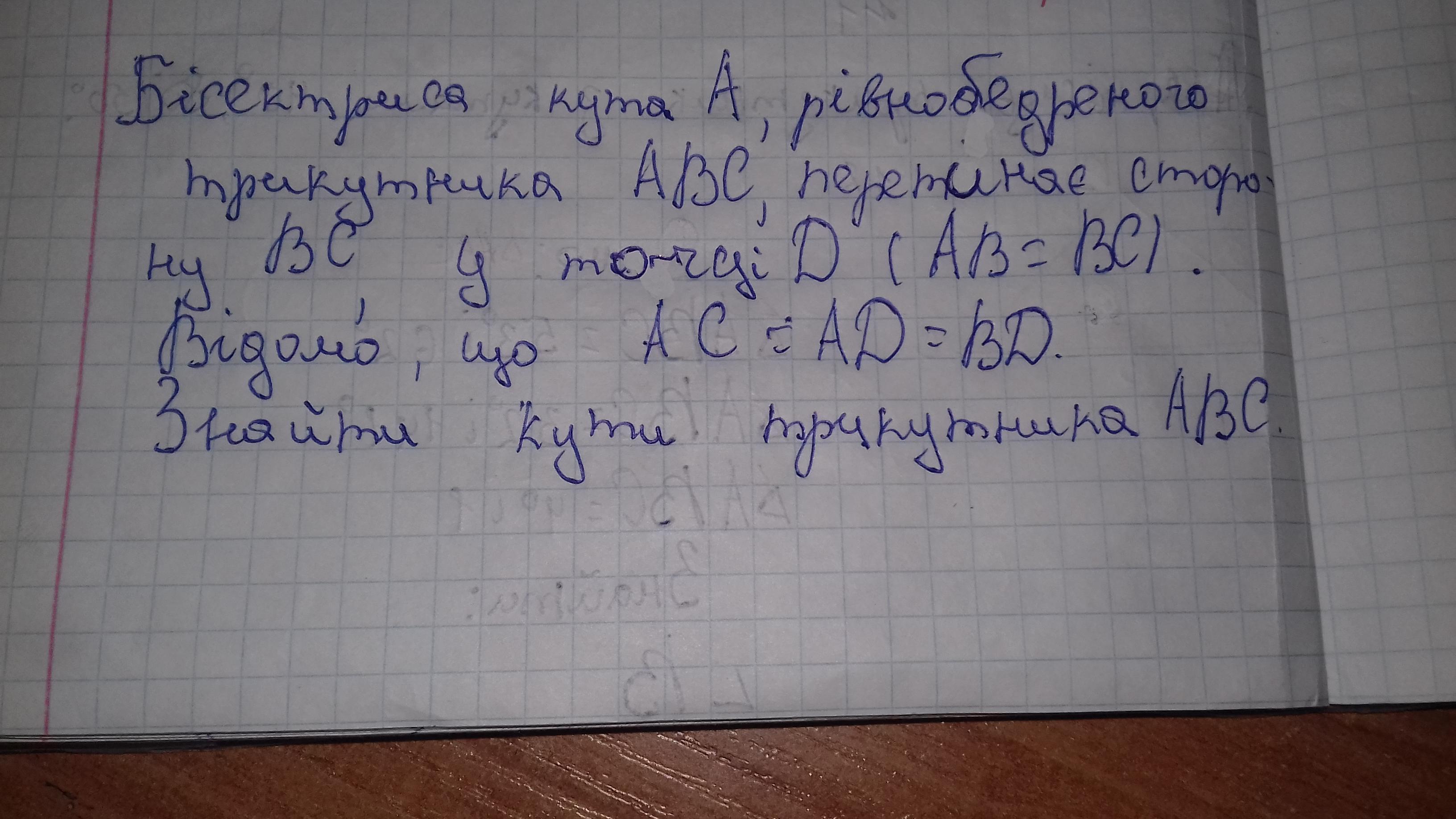Объяснение: биссектриса разбила угол А на два равных, пусть они будут равны х. Тогда уголА=<С= 2х