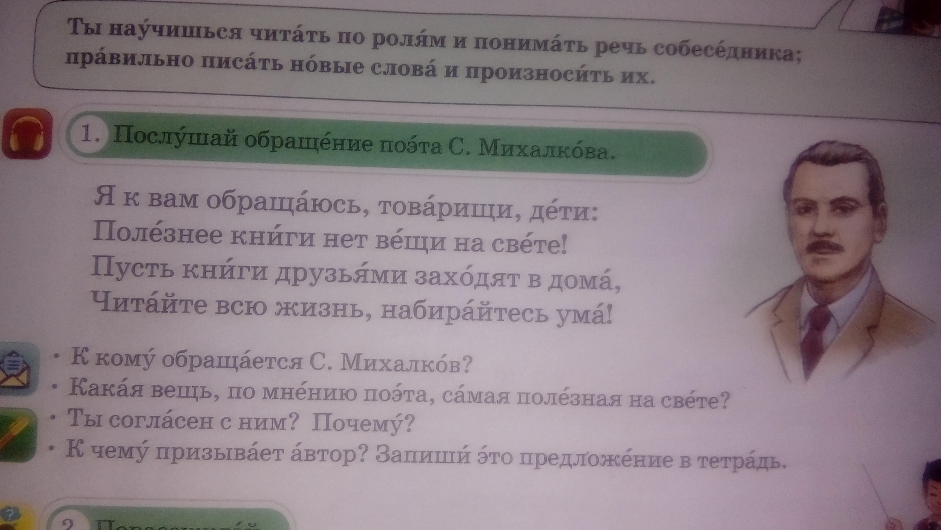 1) К детям; 2) Полезная вещь на свете - книга; 3) да , я согласен. Потому что читая книгу можно взять для себя много интересной информации. 4) Читайте всю жизнь, набирайтесь ума!