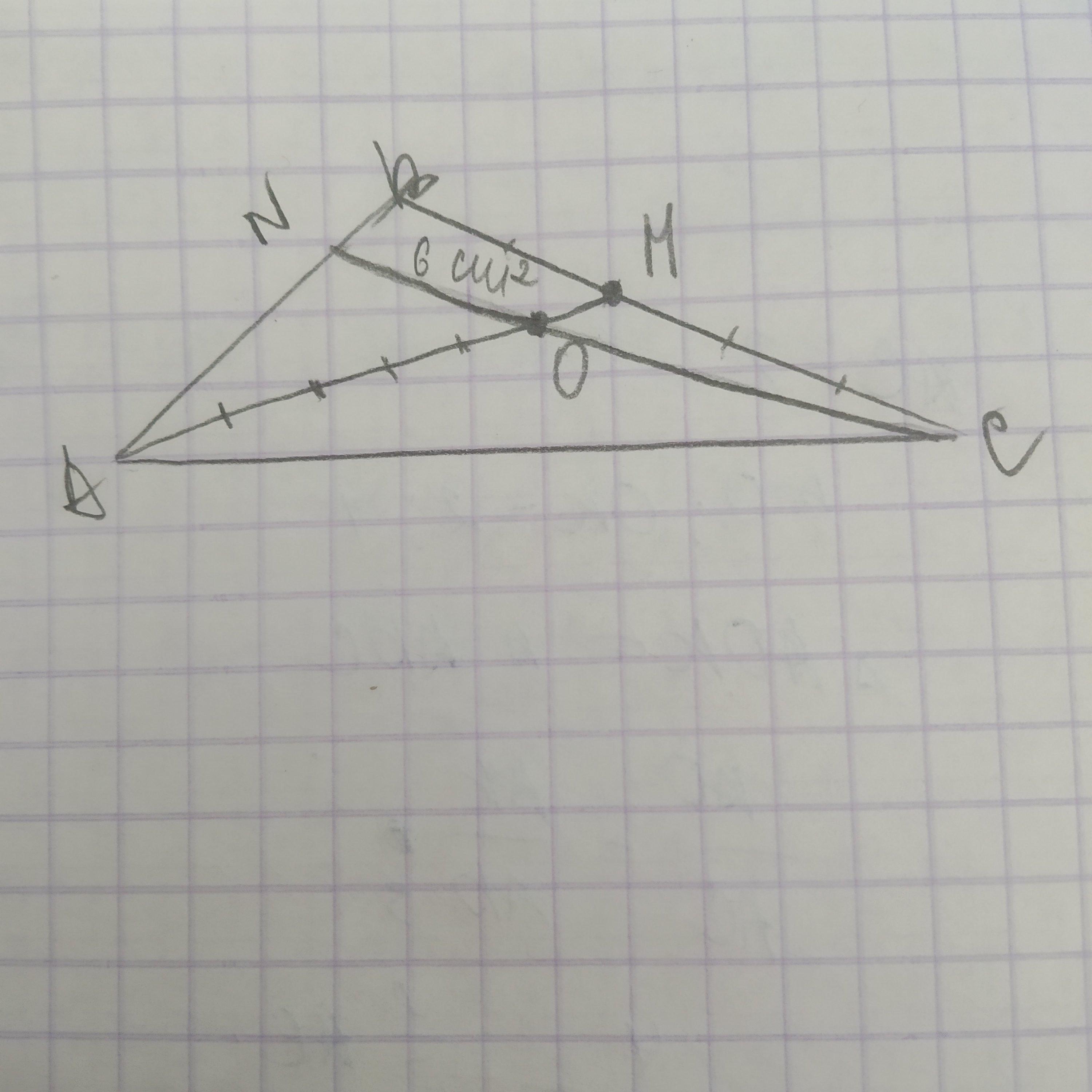 На сторонах AB и ВС треугольника АВС взяты точки М и N соответственно,СМ:МВ=3:2. Прямая СN пересекает АМ в точке О и делит её в отношении АО:ОМ=5:1. Найти площадь треугольника ABC если площадь четырехугольника NBMO равна 6см^2..
