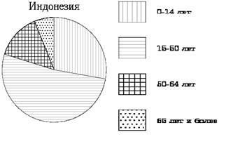На диаграмме показан возрастной состав населения Индонезии. Чего нельзя сказать по диаграмме: