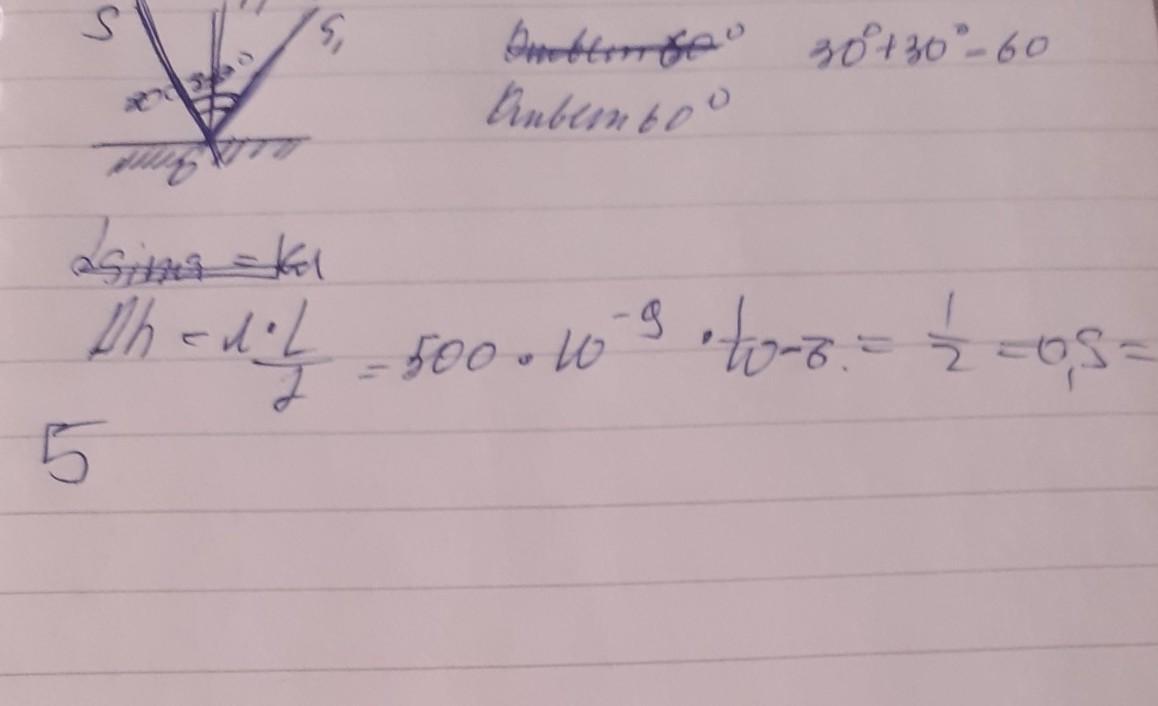 На дифракционную решетку с периодом 0,001мм падает белый свет. На экране, находящемся на расстоянии 1м от решетки образуются картина дифракции света. Определите расстояние на экране между первым и вторым максимумом зеленого света λ=500нм.