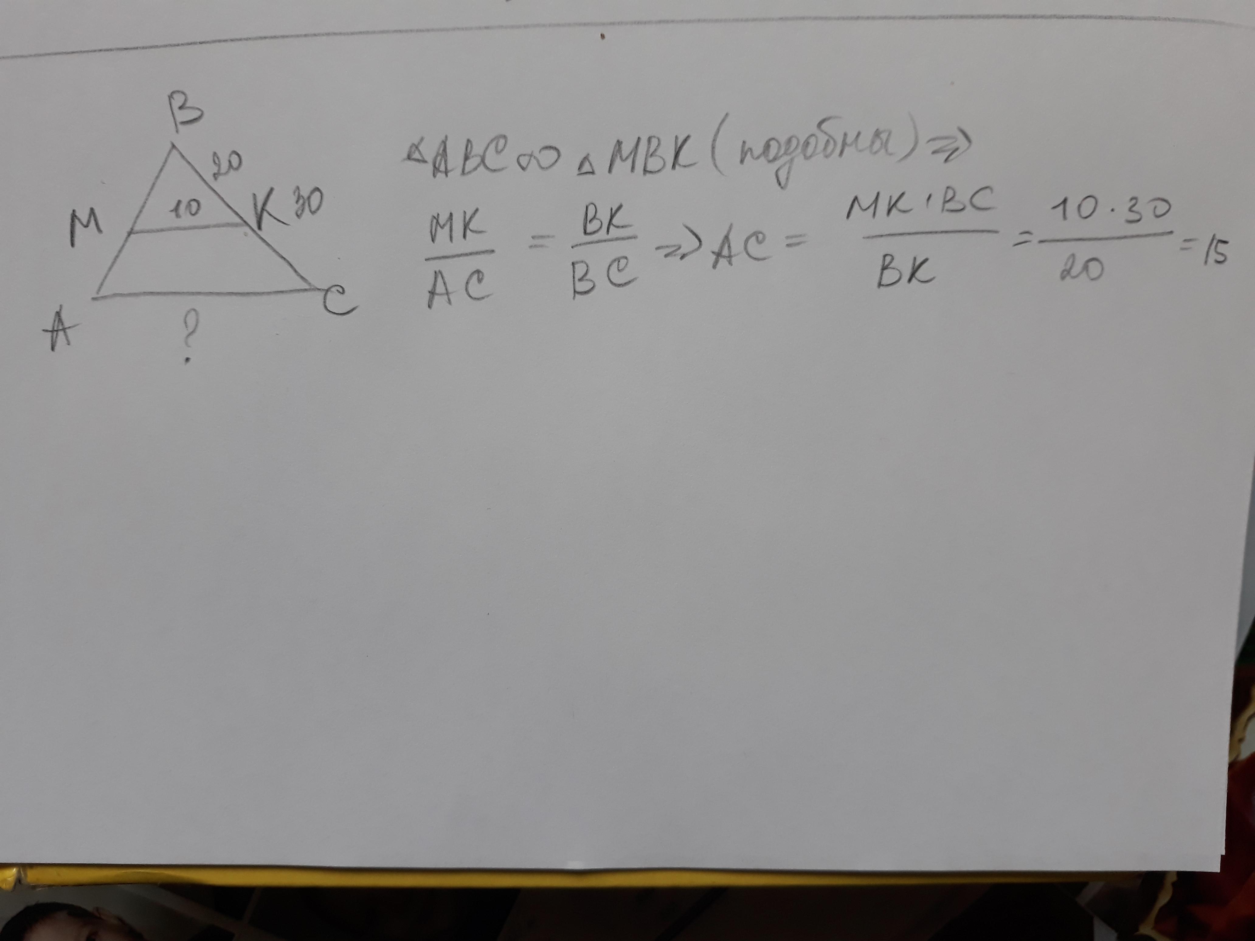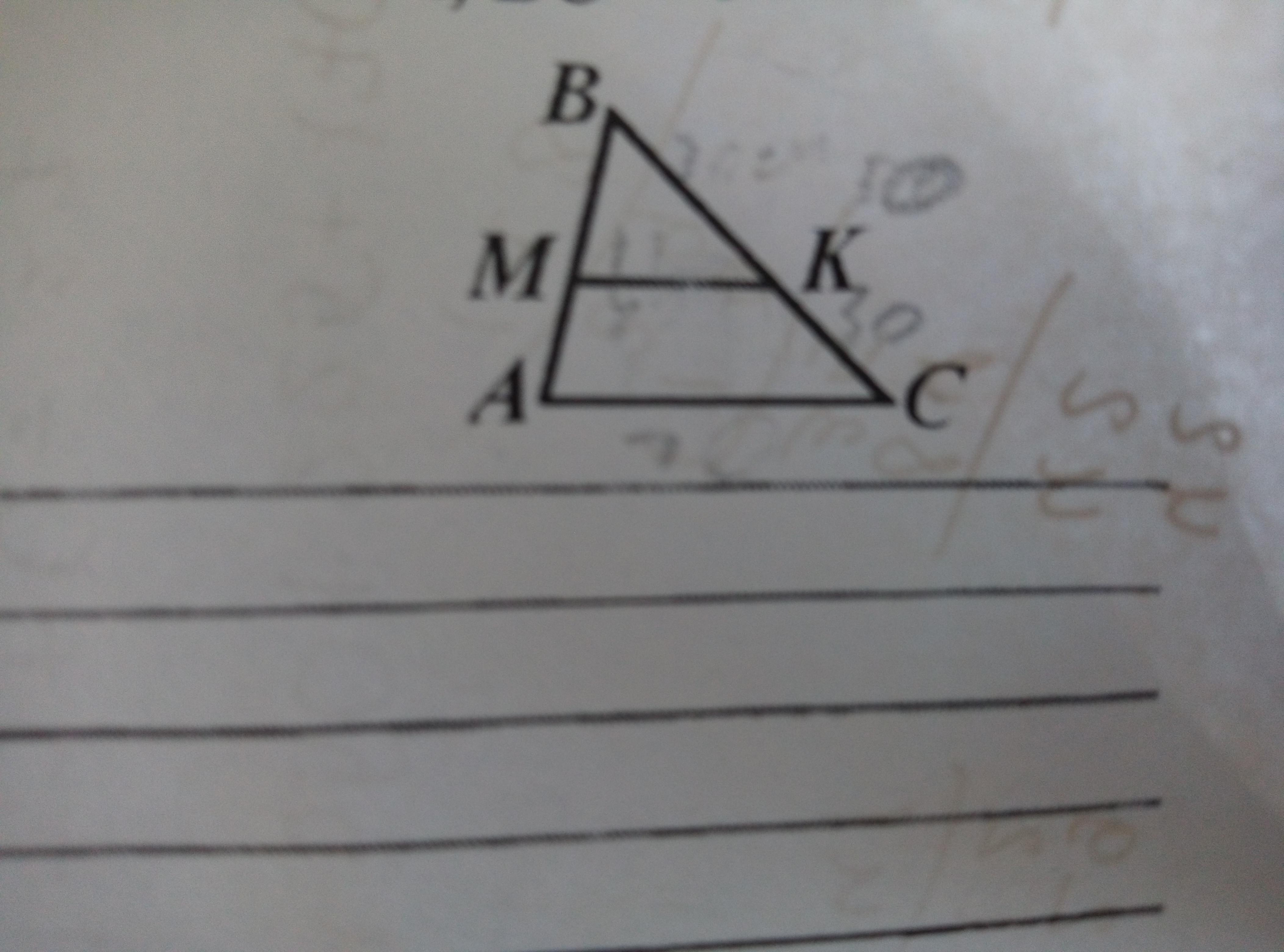 MK || AC, BK = 20 см, МК = 10 см, ВС = 30 см.
