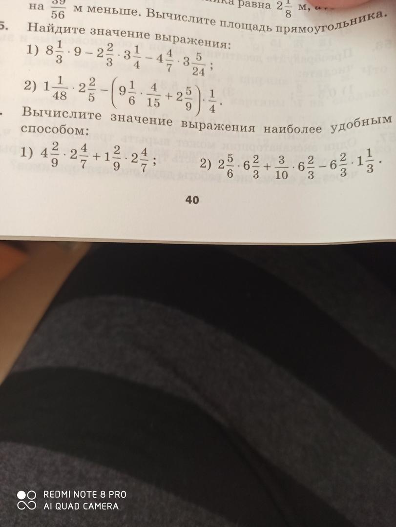 1. 4 2/9 * 2 4/7 + 1 2/9 * 2 4/7 = 2 4/7 * (4 2/9 + 1 2/9)=
