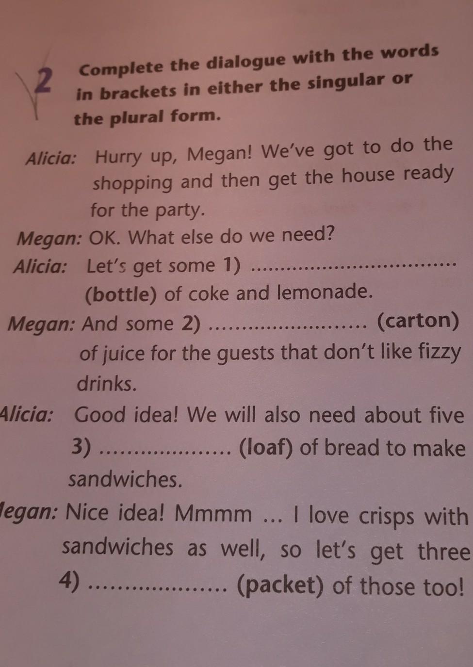 Complete the dialogue with the words in brackets in either the singular or the plural form.