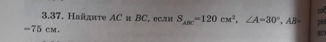 ВС²=АВ²+АС²-2АВ*АС*sin30°, ВС²=5625+40.96-2*√3*0.5*75*6.4=5665.96