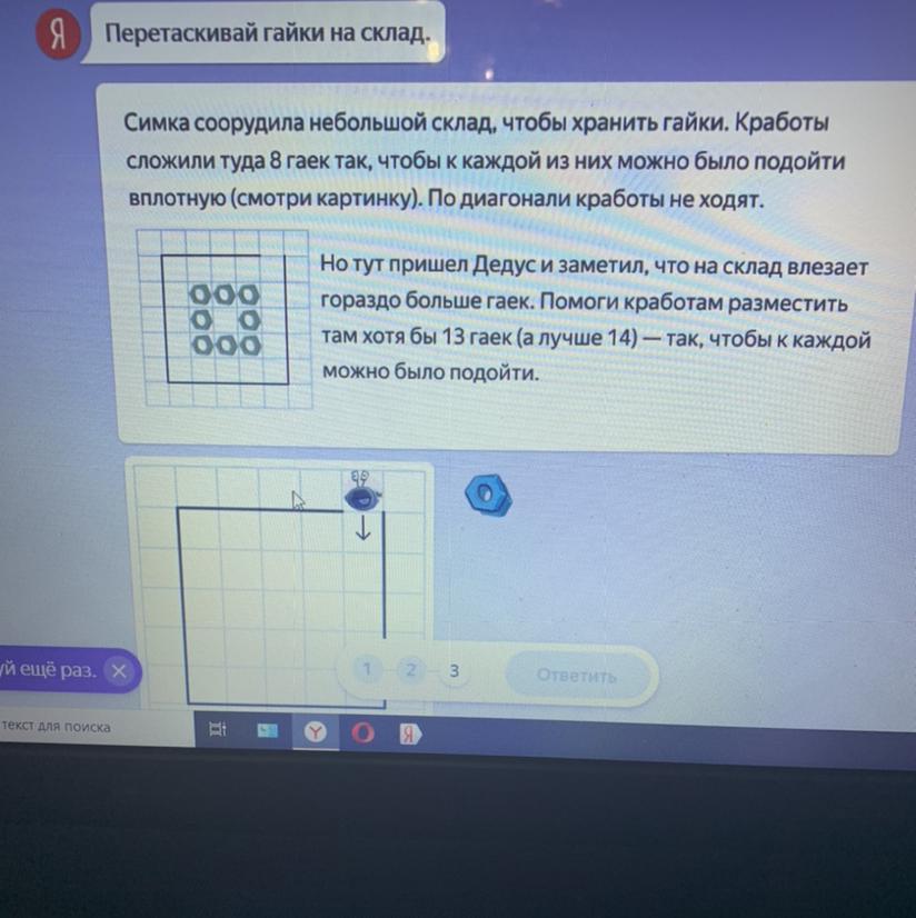сложили туда 8 гаек так, чтобы к каждой из них можно было подойти