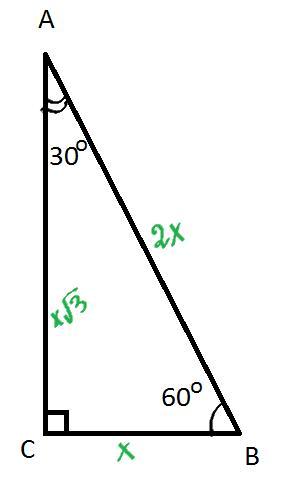 Тогда АВ=2х, т.к. гипотенуза в два раза длиннее катета, лежащего напротив угла в 30°.