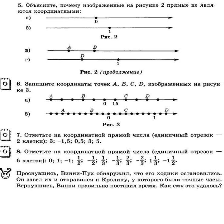 5) Координатная прямая - прямая, на которой есть начало координат, единичный отрезок и положительное или отрицательное направления а)нет ни положительного, ни отрицательного направления б,в,г) нет начала отсчёта (0)